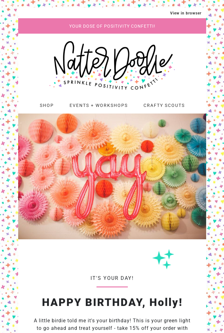 I also designed a popup, and used that beautiful new template to design her Welcome Series, Abandoned Cart, Browse Abandonment, Customer Thank You, and Bday Flows. Check out some of our email adventure below!