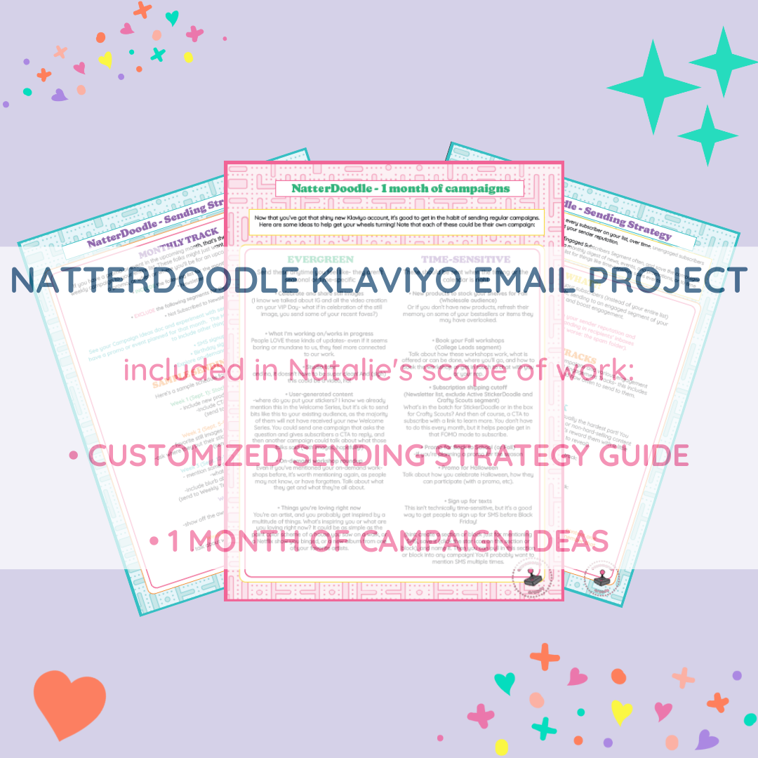 Natalie Pariano of NatterDoodle didn't need coaxing to market her business, which is the opposite of what I usually end up doing with many creative clients. Her business was at the stage where she was regularly marketing her business, but it was tough to tell if those efforts were actually making her money.