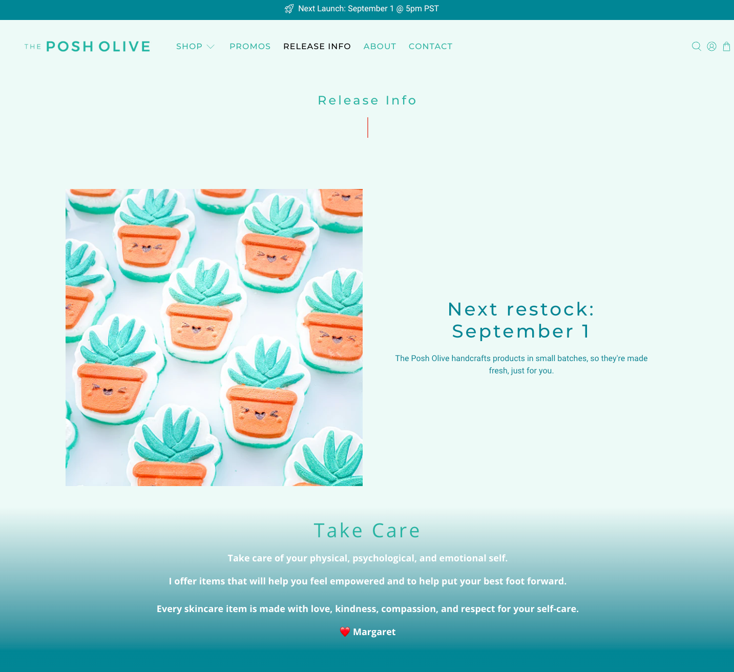 So we had to strategize a way to be able to convey information about The Posh Olive in between releases- and without hiding the website behind a wall that would compel new folks to simply bounce.
